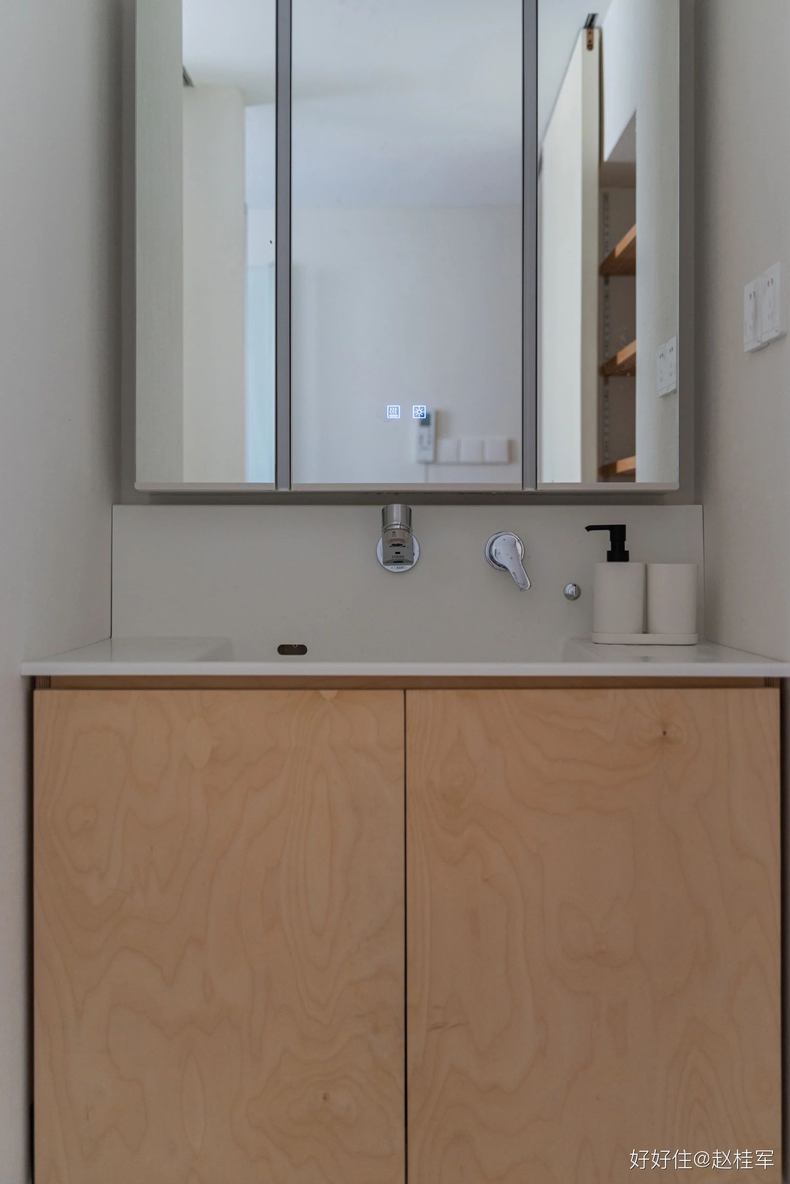 洗臉盆是 Sanwacompany 系列的 PLAIN-VUPRIGHT,空間利用率高,簡潔現(xiàn)代。一體化的樣式,也很容易打理。