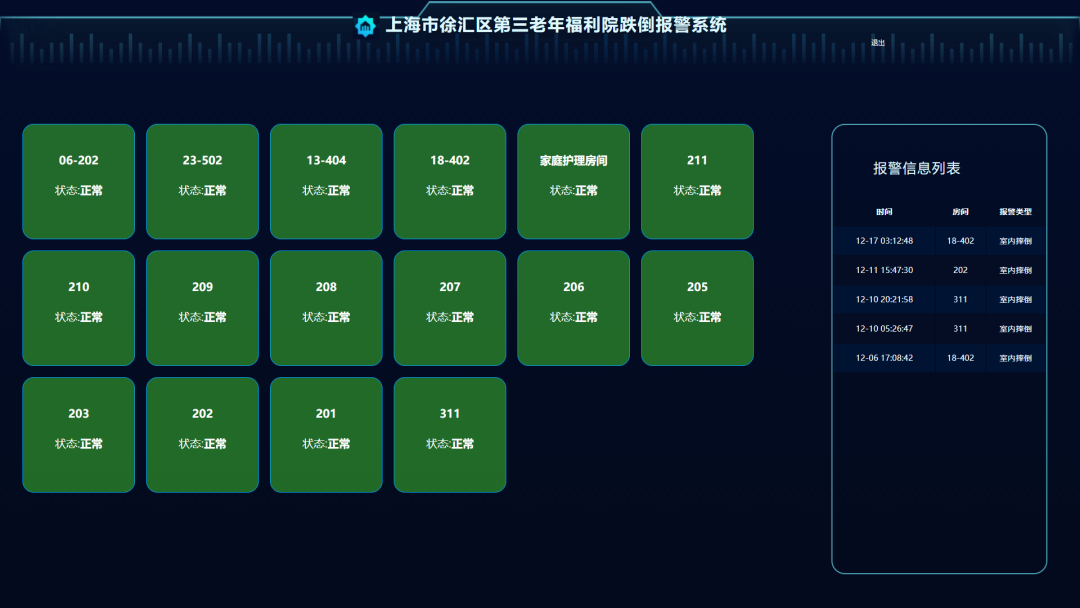 在衛(wèi)生間,感應(yīng)設(shè)備只要監(jiān)測到人員進(jìn)入,立即會開啟守護(hù)模式,一旦出現(xiàn)老人長時間不移動,可能出現(xiàn)跌倒的情況,會自動報警通知護(hù)理員前來查看。此外,該養(yǎng)老院的監(jiān)控系統(tǒng)、消防系統(tǒng)也都做到了智能化,可以在第一時間及時發(fā)現(xiàn)隱患,通知應(yīng)急人員前來處置。