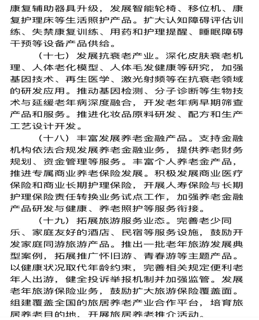 2024年1月15日正式發(fā)布的《國務院辦公廳關(guān)于發(fā)展銀發(fā)經(jīng)濟增進老年人福祉的意見》指出了許多未來康養(yǎng)發(fā)展的新方向,尤其是第十七條所指出的“發(fā)展抗衰老產(chǎn)業(yè)”: