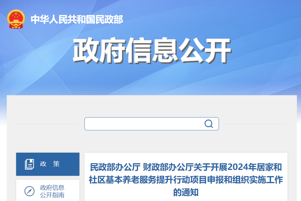 民政部辦公廳 財政部辦公廳關(guān)于開展2024年居家和社區(qū)基本養(yǎng)老服務(wù)提升行動項(xiàng)目申報和組織實(shí)施工作的通知