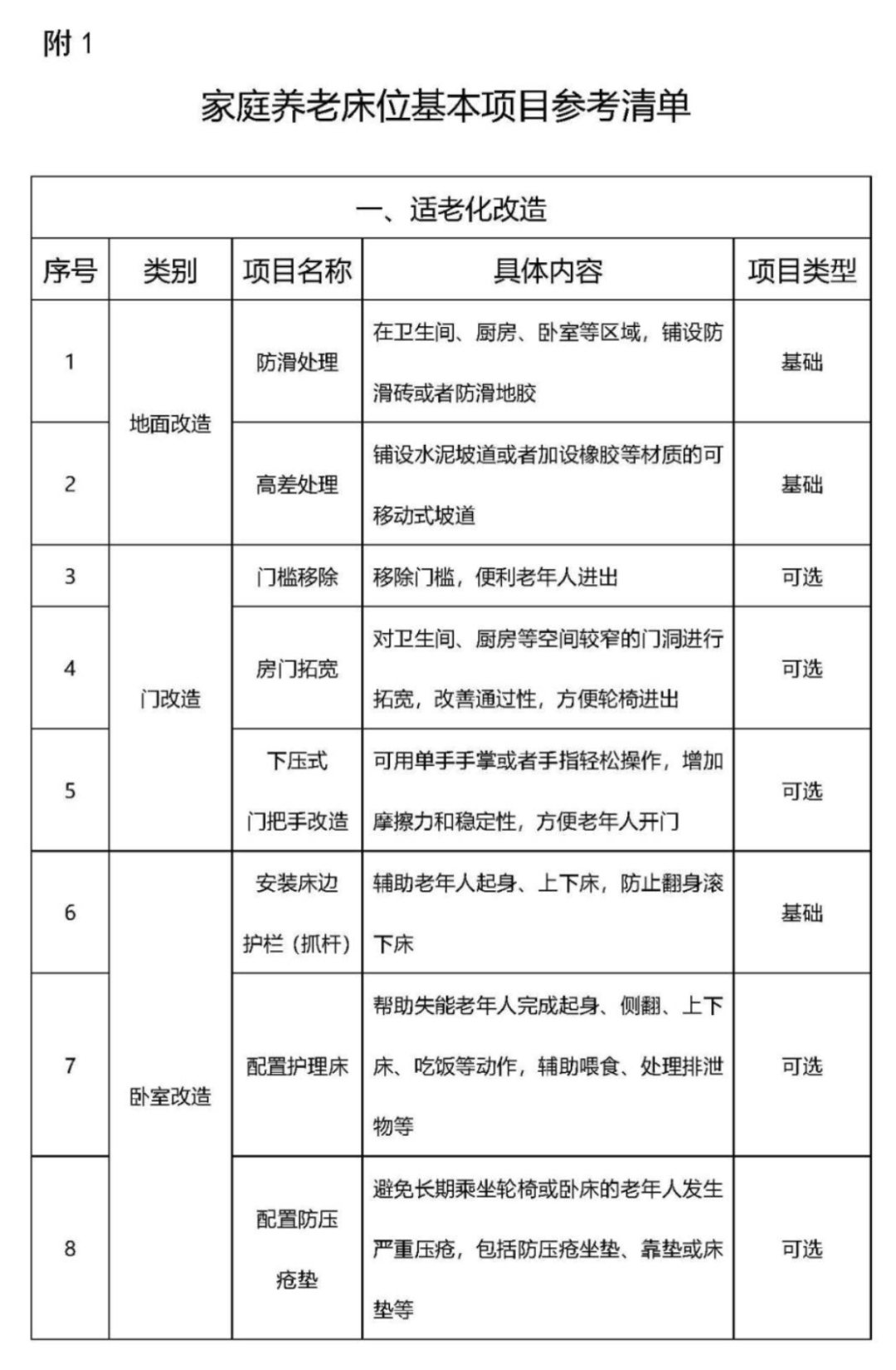 附:1.家庭養(yǎng)老床位基本項(xiàng)目參考清單