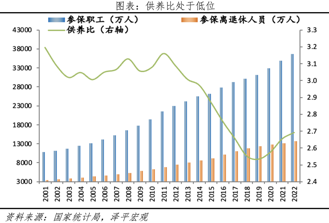 5)養(yǎng)老金支柱的代際壓力較大,累計(jì)結(jié)余或?qū)⒑谋M。隨著我國(guó)第二次嬰兒潮主力進(jìn)入離退休階段,養(yǎng)老金供養(yǎng)比將面臨下降趨勢(shì)。2010-2022年城鎮(zhèn)職工基本養(yǎng)老保險(xiǎn)離退休人口從0.63億增至1.36億人,參保職工和離退休人員的供養(yǎng)比由3.2降至2.7,即平均兩個(gè)職工供養(yǎng)一個(gè)退休人員。離退休人口規(guī)模擴(kuò)增,加大養(yǎng)老金支付壓力。過(guò)去在人口年齡結(jié)構(gòu)均衡的情況下,養(yǎng)老金收支體系能夠發(fā)揮良好的養(yǎng)老保障功能,但隨著老齡化加速到來(lái),作為養(yǎng)老金籌集來(lái)源的勞動(dòng)力規(guī)模持續(xù)縮減,而支取需求的老年人口規(guī)模迅速擴(kuò)大,養(yǎng)老金將不可避免地出現(xiàn)收支缺口,威脅公共養(yǎng)老制度的可持續(xù)性。中國(guó)社科院《中國(guó)養(yǎng)老金精算報(bào)告2019-2050》預(yù)測(cè),養(yǎng)老金收不抵支出現(xiàn)在2028年,到2035年將耗盡累計(jì)結(jié)余。
