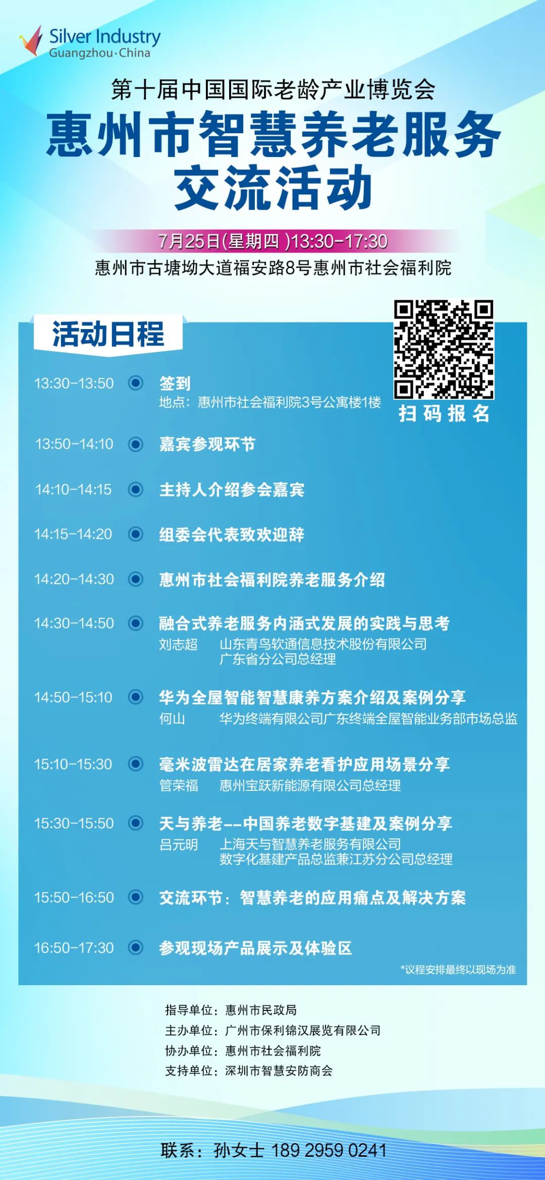 隨著養(yǎng)老需求逐步擴(kuò)大,數(shù)字科技成為了構(gòu)建智慧養(yǎng)老新發(fā)展格局的重要支撐。為了進(jìn)一步促進(jìn)智慧養(yǎng)老服務(wù)體系的構(gòu)建和完善,在惠州市民政局的工作指導(dǎo)下,廣州市保利錦漢展覽有限公司將聯(lián)合惠州市社會福利院、深圳市智慧安防商會于2024年7月25日在惠州市舉辦“惠州市智慧養(yǎng)老服務(wù)交流活動”。