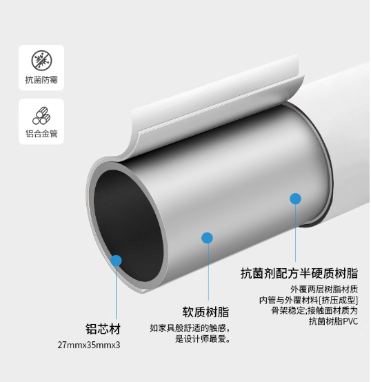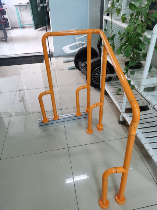 扶手桿為實木壓合而成,彎頭及支座為鋁合金精密壓鑄成型。