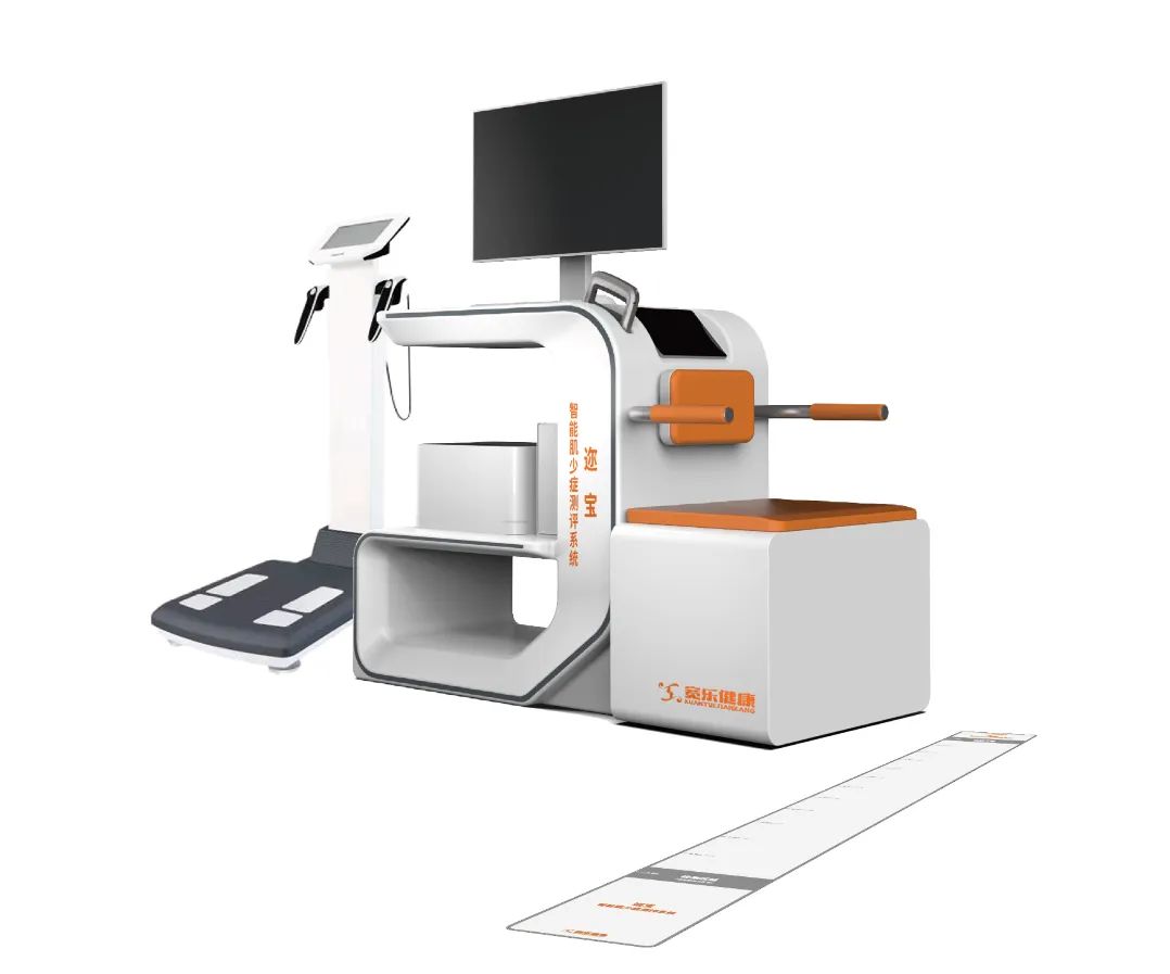 寬樂健康自主研發(fā)的老年功能性體適能測試/評估一體機,通過標(biāo)準(zhǔn)化測試方法,客觀的評價體系,智能出具分析報告。產(chǎn)品通過踏步測試、啞鈴彎舉、30s坐站試驗、抓背試驗、座椅體前屈、8英尺走6項測試項目,對有氧適能、肌肉適能、柔韌適能、敏捷與動態(tài)平衡適能4個功能性體適能維度進(jìn)行評價,形成老年功能性體適能綜合能力評估報告,對老年人功能性體適能退化趨勢進(jìn)行分析,并對老年人未來獨立生活能力進(jìn)行預(yù)警。