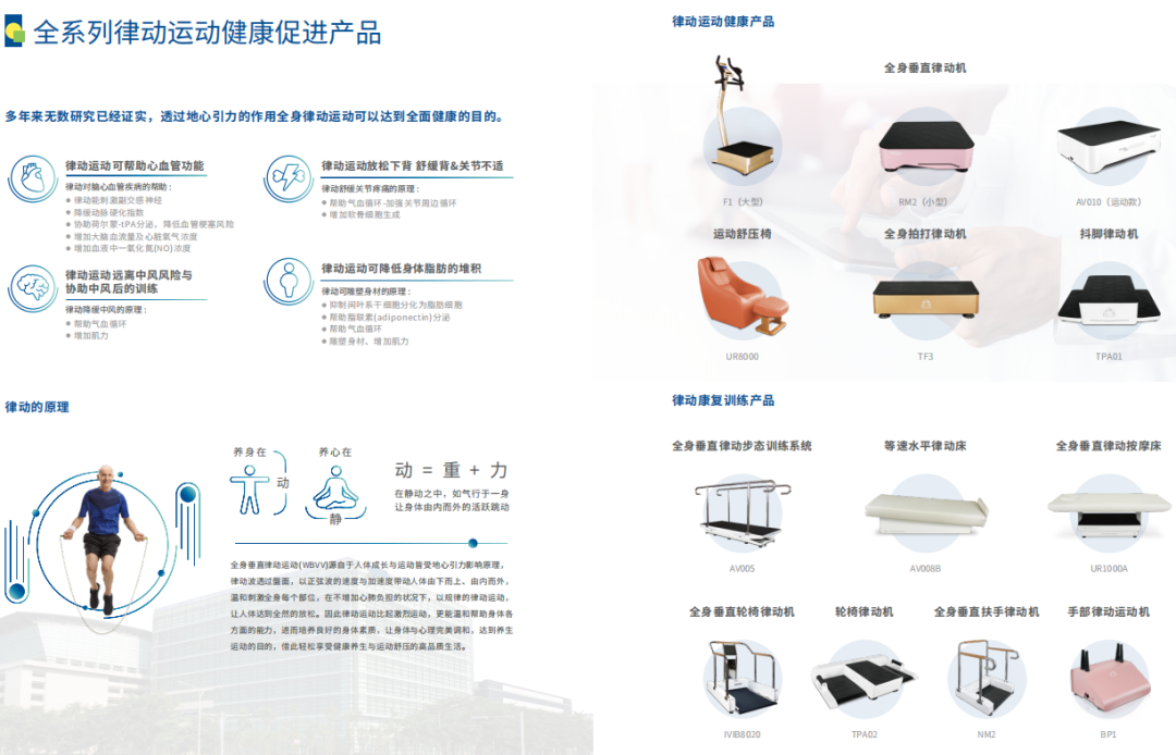 全身垂直律動運動(WBVV)源自于人體成長與運動皆受地心引力影響原理律動波透過盤面,以正弦波的速度與加速度帶動人體由下而上、由內(nèi)而外溫和刺激全身每個部位,在不增加心肺負(fù)擔(dān)的狀況下,以規(guī)律的律運動讓人體達(dá)到全然的放松。因此律動運動比起激烈運動,更能溫和幫助身各方面的能力,進(jìn)而培養(yǎng)良好的身體素質(zhì),讓身體與心理完美調(diào)和,達(dá)到養(yǎng)生運動的目的,藉此輕松享受健康養(yǎng)生與運動舒壓的高質(zhì)量生活。