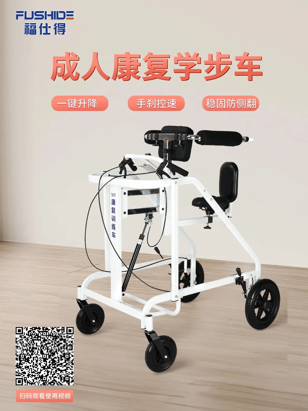 一鍵升降,手剎控速,穩(wěn)固防側(cè)翻