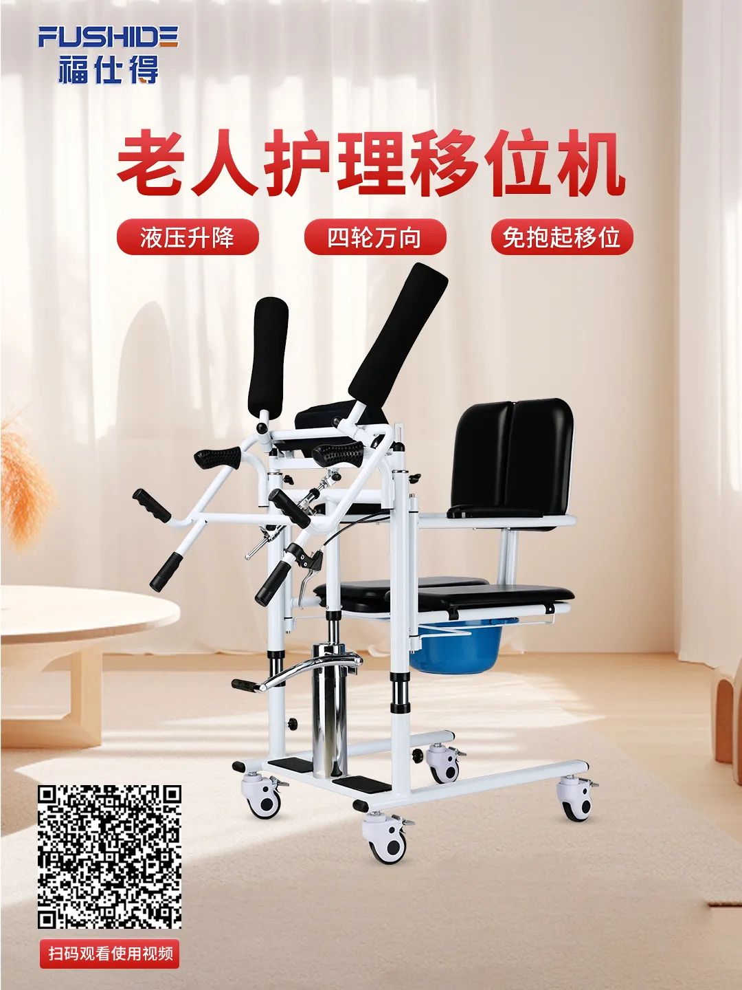 液壓升降,四輪萬向,免抱起移位