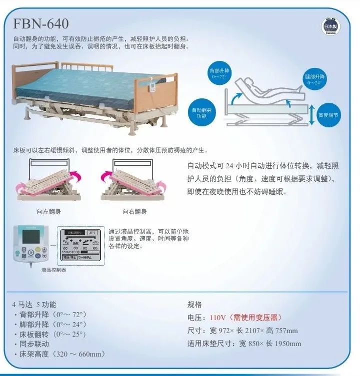 1、自動翻身的功能,可有效防止褥瘡的產(chǎn)生,減輕照護(hù)人員的負(fù)擔(dān)。同時,為了避免發(fā)生誤吞、誤咽的情況,也可在床板抬起時翻身。