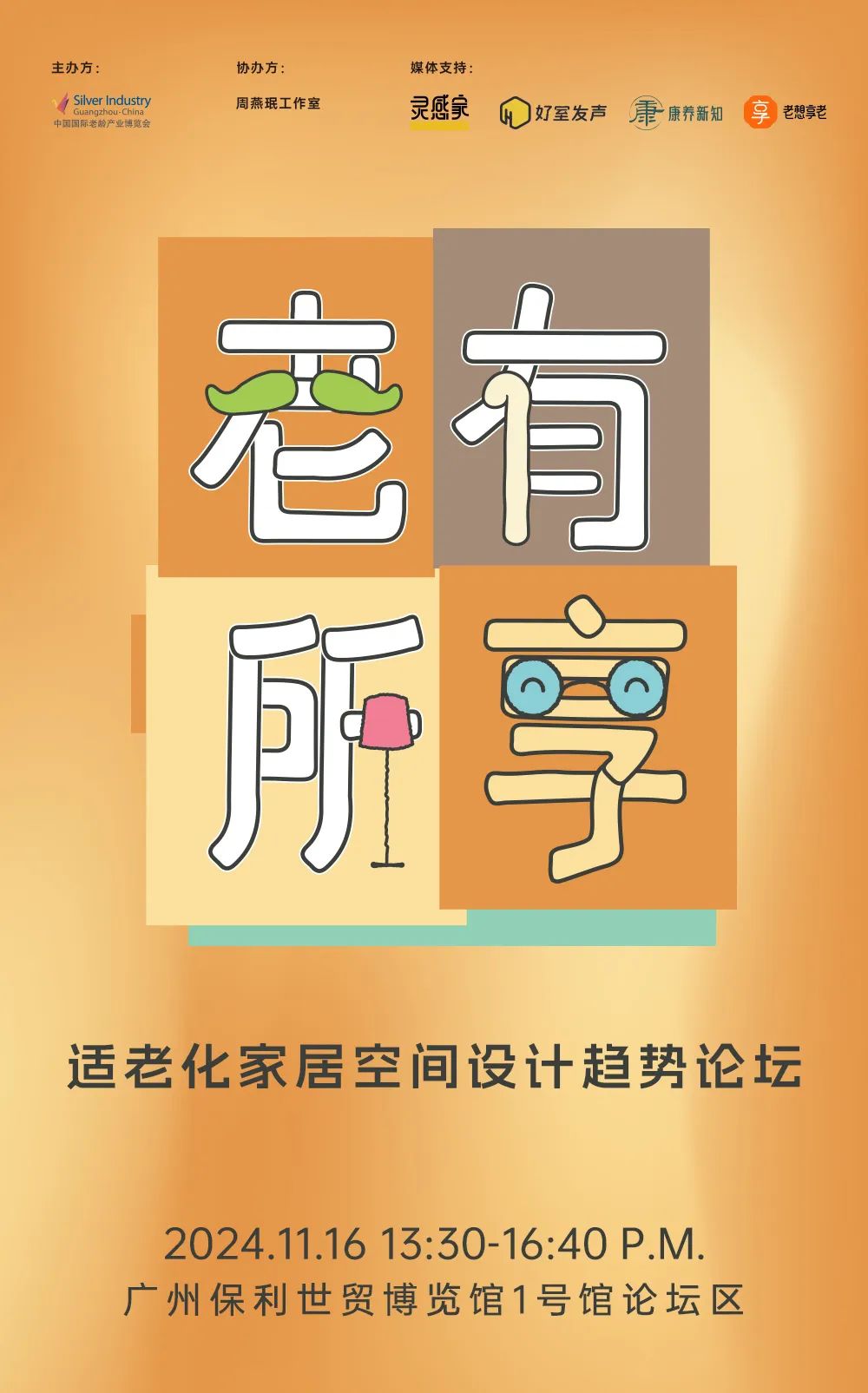 基于此,由中國國際老齡產(chǎn)業(yè)博覽會組委會主辦,周燕珉工作室協(xié)辦的“老有所享”——適老化家居設(shè)計趨勢論壇將于11月16日下午13:30-16:40廣州保利世貿(mào)博覽館1號館論壇區(qū)隆重舉辦,活動開創(chuàng)性地聚焦「適老化如何與家居設(shè)計深度融合」這一主題,為未來的家居適老化空間設(shè)計實踐與養(yǎng)老產(chǎn)業(yè)發(fā)展,開辟新思路與方向。