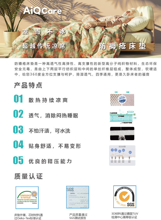 AiQCare是集團(tuán)孵化的中老年紡織品牌,屬于集團(tuán)戰(zhàn)略級(jí)定位,是集團(tuán)結(jié)合電子、紡織、高科技材料為一體的創(chuàng)新型高科技產(chǎn)品線。我們一直秉承“讓老年人的生活更舒適、更美好!”的核心理念,為老人提供中老年友好型紡織用品。主要產(chǎn)品包括黑科技?xì)⒕ギ愇都徔棶a(chǎn)品、電子發(fā)熱服飾類產(chǎn)品、EMS健康保健類產(chǎn)品、智能健康監(jiān)測(cè)類產(chǎn)品,涉及智能、健康、護(hù)理等多個(gè)領(lǐng)域。