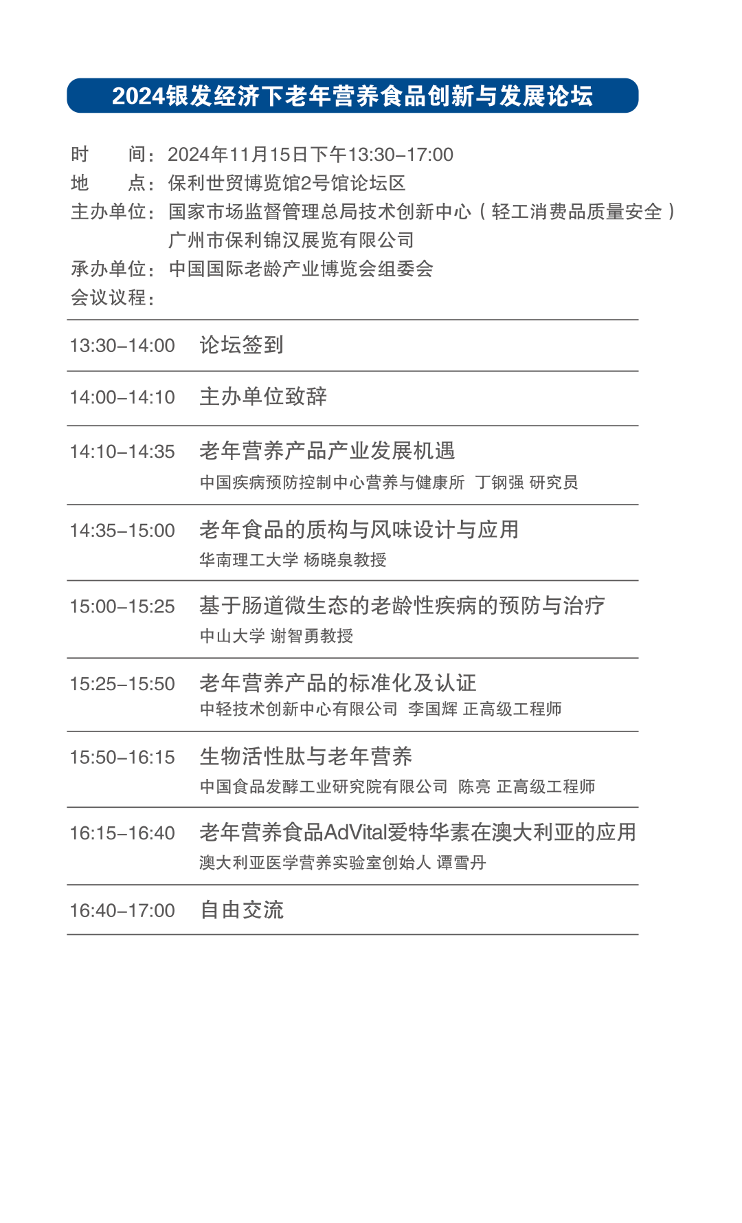 2024銀發(fā)經(jīng)濟(jì)下老年?duì)I養(yǎng)食品創(chuàng)新與發(fā)展論壇