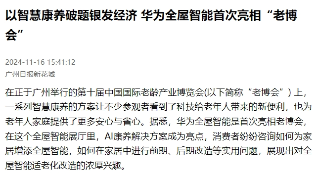 記者了解到,全屋智能在康養(yǎng)領(lǐng)域的應(yīng)用還存在許多發(fā)展空間,還需要更多業(yè)界攜手合作伙伴,共同推動(dòng)康養(yǎng)產(chǎn)業(yè)的創(chuàng)新發(fā)展。