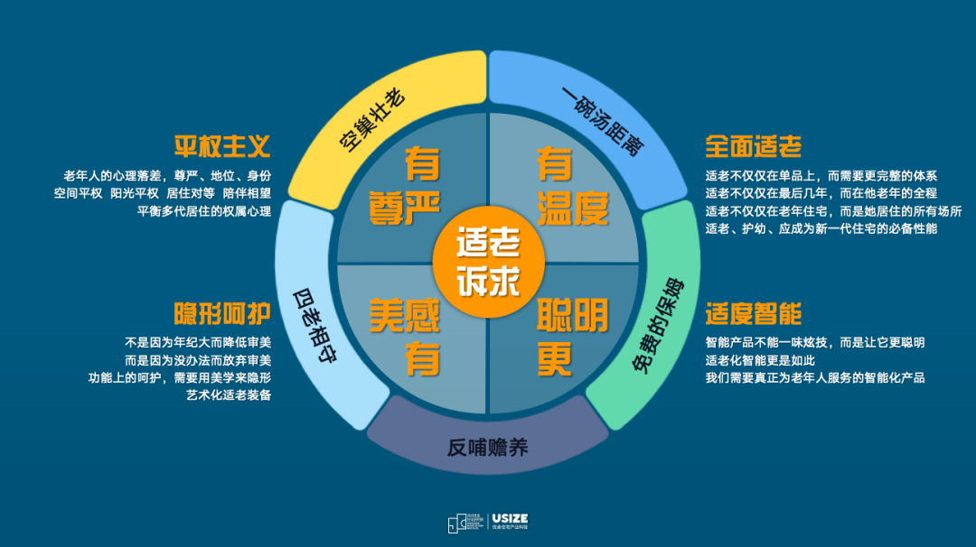 在中國(guó)特色的代際關(guān)系條件下,老年人在家庭全生命周期中占據(jù)超過(guò)80%的比重,適老產(chǎn)品不能僅僅看著眼前特護(hù)級(jí)別的適老化改造市場(chǎng),而應(yīng)面向更加積極更長(zhǎng)效維度的適老需求,讓老年人從60歲退休開(kāi)始,就能夠有尊嚴(yán)、有溫度、有美感,更聰明的老有所享。