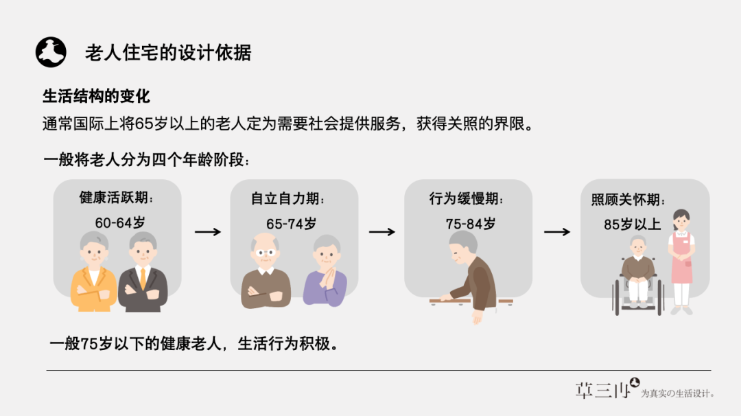深圳優(yōu)舍住宅研究院創(chuàng)始人賀小雨指出,市場(chǎng)的常規(guī)概念談適老化,就是無(wú)級(jí)差,就是加扶手,以及一些直指老年人最后那幾年的半醫(yī)療強(qiáng)護(hù)理的產(chǎn)品,不能感受到老年人的生活,只體會(huì)到老了之后的悲涼。