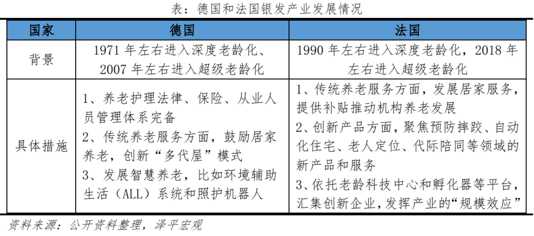 2)法國(guó)于1990年左右進(jìn)入深度老齡化社會(huì),2018年左右進(jìn)入超級(jí)老齡化社會(huì),隨著老齡化加速,政府養(yǎng)老負(fù)擔(dān)加重,2020年養(yǎng)老金缺口高達(dá)180億歐元。面對(duì)老齡化疊加高福利陷阱,法國(guó)政府開始扶持老年相關(guān)行業(yè),發(fā)展“銀發(fā)經(jīng)濟(jì)”。