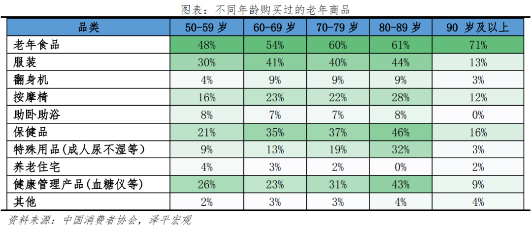 2)分年齡看,低齡老人需要消費(fèi)、社交、娛樂,高齡老人需要照護(hù)服務(wù),長(zhǎng)壽老人關(guān)注身體機(jī)能變化等方面。傳統(tǒng)老年人口劃分為60歲及以上或65歲及以上人口,如果考慮備老人群,可把銀發(fā)群體擴(kuò)展到50歲及以上人群。按年齡劃分,銀發(fā)群體可分為準(zhǔn)老人(50-64歲)、低齡老人(65-74歲)、高齡老人(75-89歲)、長(zhǎng)壽老人(90歲及以上)。年齡階段不同,老年群體的需求也不盡相同,其中準(zhǔn)老人處于職業(yè)生涯晚期,身體相對(duì)健康,即將退休,重點(diǎn)關(guān)注文娛、抗衰老等方面;低齡老人剛步入退休階段,處于退休適應(yīng)期,重點(diǎn)關(guān)注健康管理、娛樂社交等方面,對(duì)短途旅行、老年大學(xué)等方面的需求增加;高齡老人身體機(jī)能減退,自理能力減弱,更加關(guān)注醫(yī)療保健、養(yǎng)老服務(wù)等方面;長(zhǎng)壽老人更加注重精神層面需求,安享晚年生活。