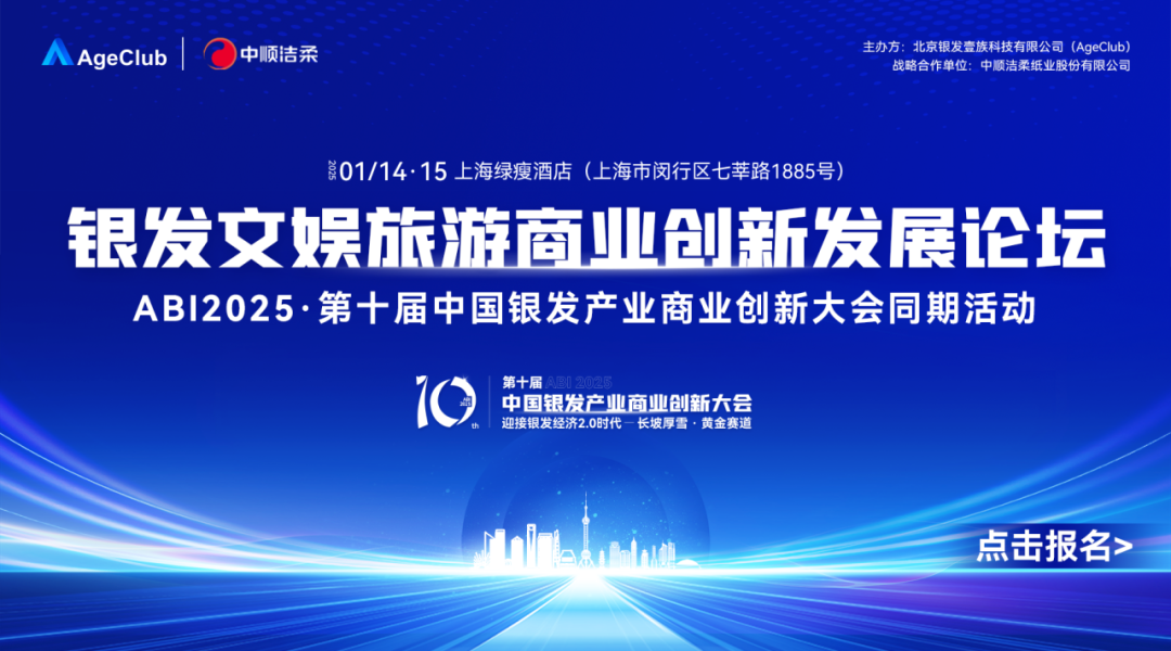 年度大會(huì)重磅來(lái)襲!ABI2025·第十屆中國(guó)銀發(fā)產(chǎn)業(yè)商業(yè)創(chuàng)新大會(huì)將于2025年1月14-15日在上海舉辦,現(xiàn)雙日特惠票正在火熱預(yù)售中,限時(shí)限量速來(lái)!