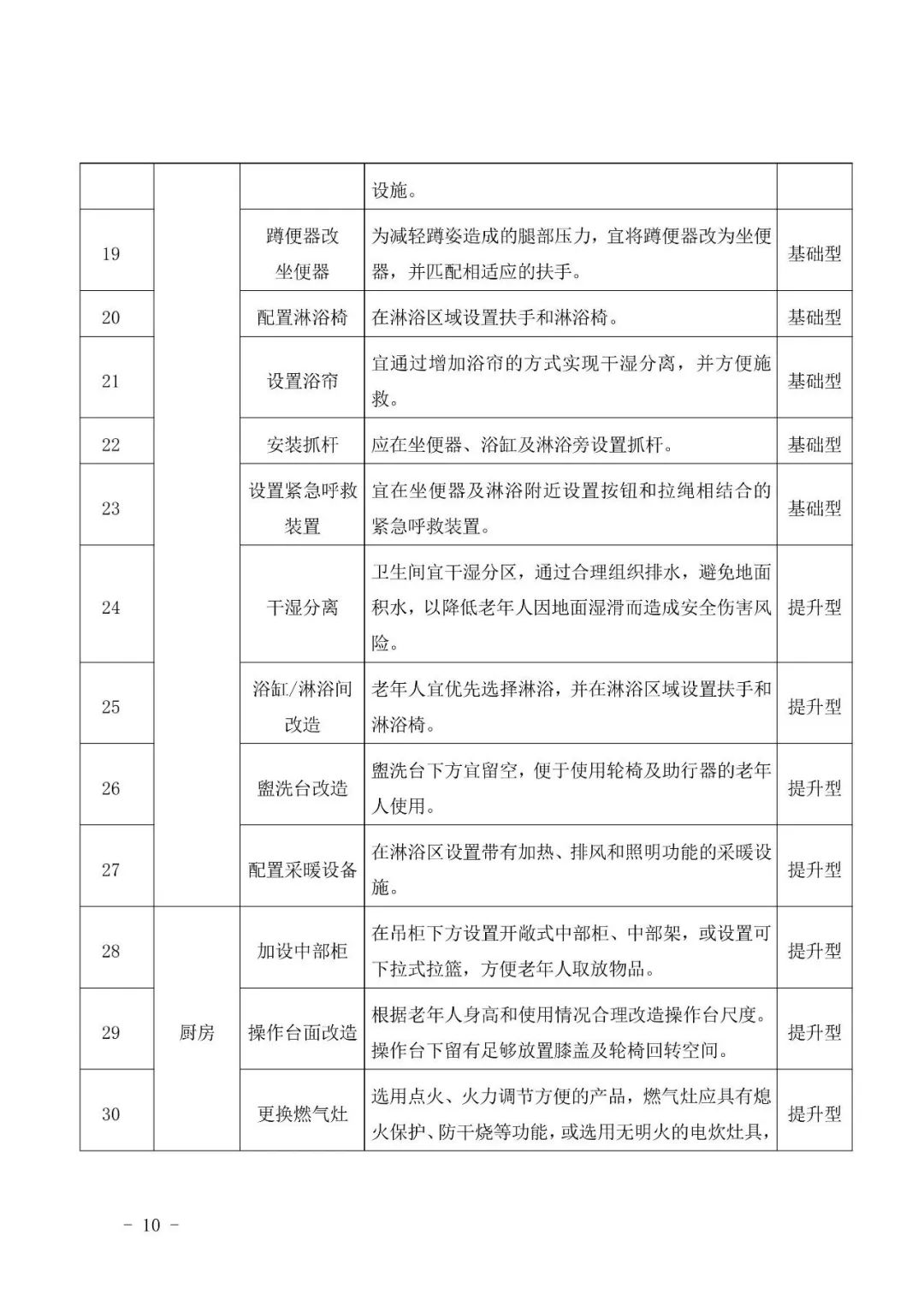 居家適老化改造主要由室內(nèi)空間改造(包括入戶空間、起居廳、臥室、衛(wèi)生間、廚房、陽臺(tái)以及通用類改造)和老年用品配置組成,具體參考廣州市居家適老化改造項(xiàng)目和老年用品配置參考清單(附件1)。