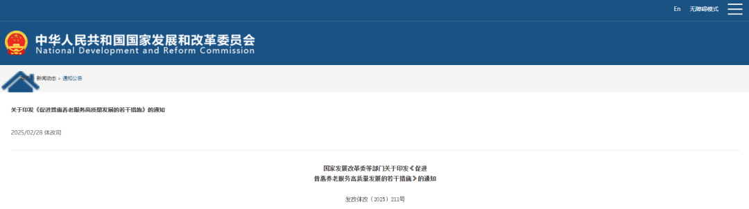 國(guó)家發(fā)展改革委等部門關(guān)于印發(fā)《促進(jìn)普惠養(yǎng)老服務(wù)高質(zhì)量發(fā)展的若干措施》的通知
