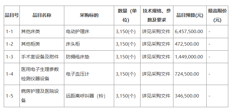 采購(gòu)需求:包括智慧病房集成管理平臺(tái)及醫(yī)護(hù)硬件設(shè)備兩大方面采購(gòu),具體需求見(jiàn)公告附件