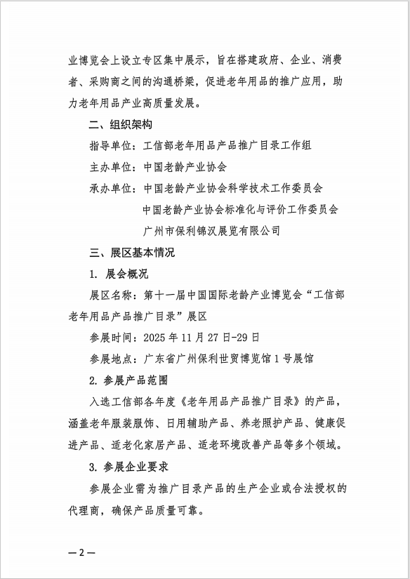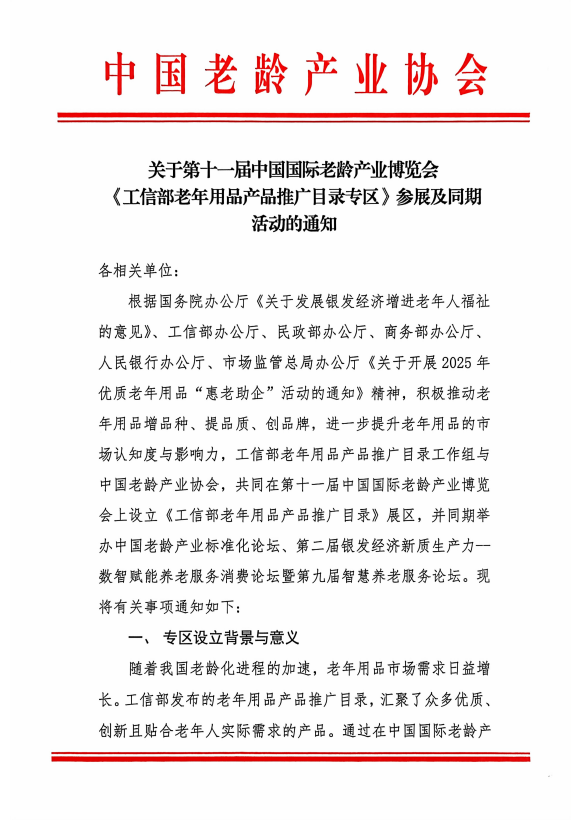 為進一步提升老年用品的市場認知度與影響力,搭建政府、企業(yè)、消費者之間的溝通橋梁,作為“惠老助企”活動的重要延伸,11月27-29日,第十一屆中國國際老齡產(chǎn)業(yè)博覽會(SIC老博會)將設(shè)立《工信部老年用品產(chǎn)品推廣目錄》展區(qū)。