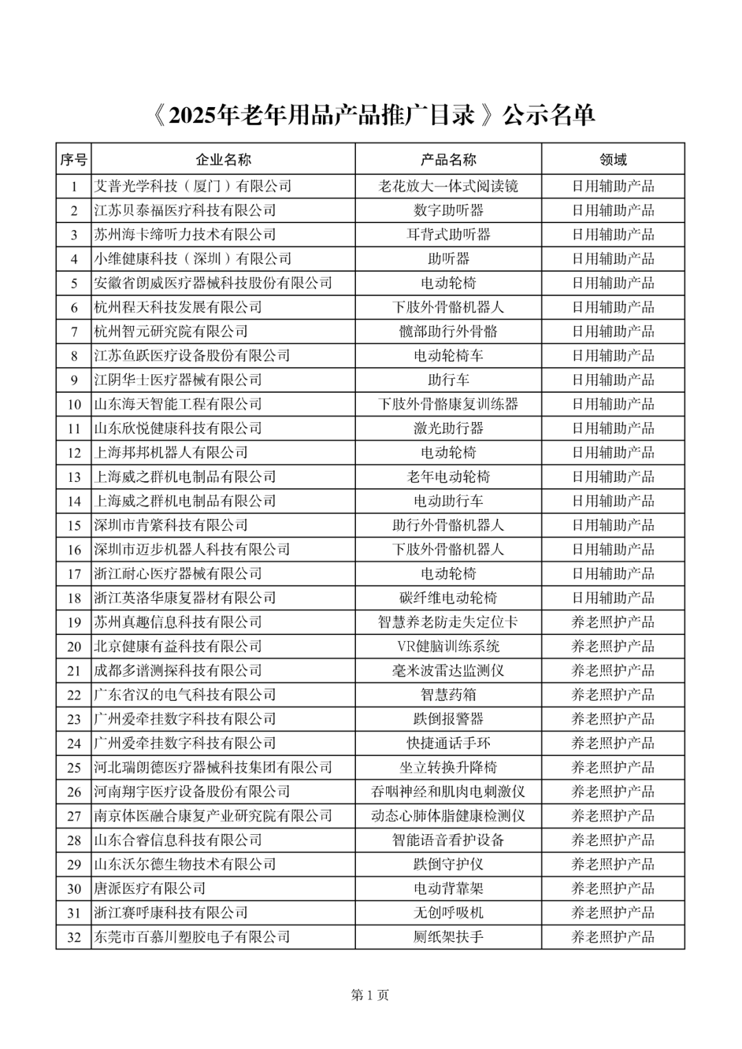 附件:《2025年老年用品產(chǎn)品推廣目錄》公示名單