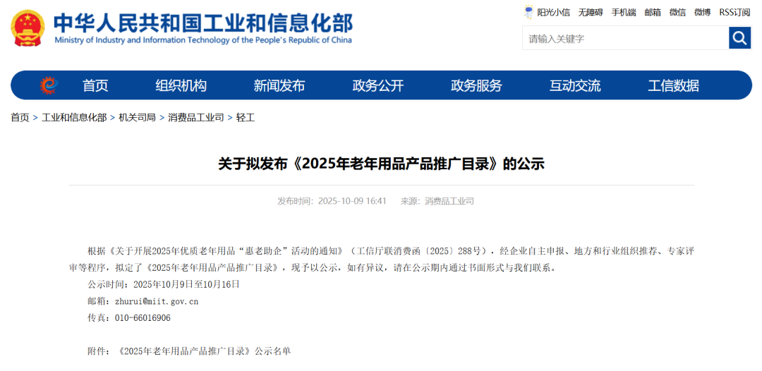 10月9日,國家工業(yè)和信息化部擬發(fā)布《2025年老年用品產(chǎn)品推廣目錄》。據(jù)公示,共計(jì)179家企業(yè)的產(chǎn)品入選,產(chǎn)品領(lǐng)域涵蓋日用輔助產(chǎn)品、養(yǎng)老照護(hù)產(chǎn)品、適老化家居產(chǎn)品、健康管理與促進(jìn)產(chǎn)品、適老環(huán)境改善產(chǎn)品、老年服裝服飾。