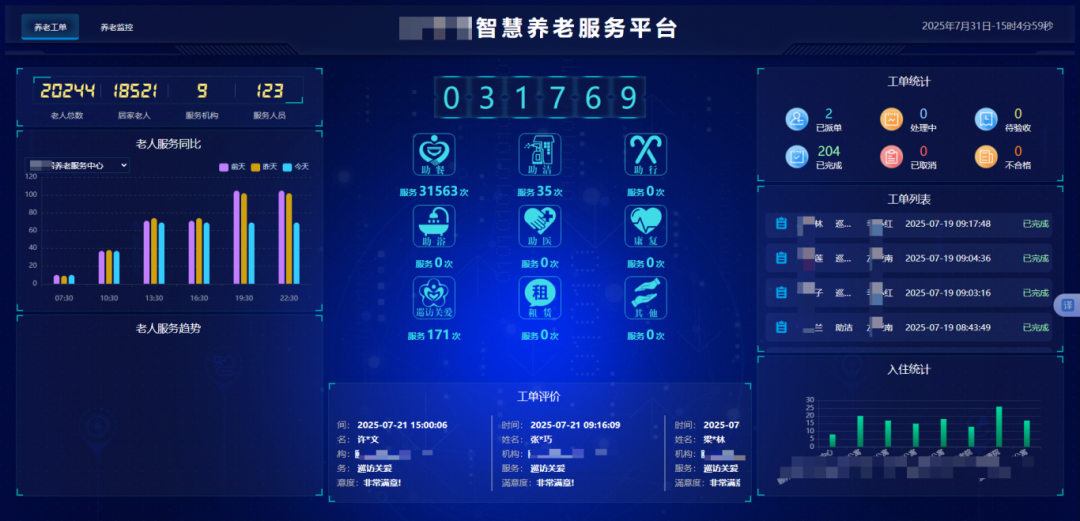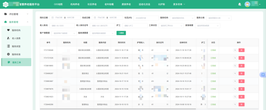為居家養(yǎng)老提供信息化服務(wù),包括服務(wù)預(yù)約、服務(wù)工單、服務(wù)評(píng)價(jià)等全流程功能;通過(guò)信息化管理系統(tǒng)對(duì)重度失能老年人進(jìn)行健康評(píng)估,完成床位簽約,附近機(jī)構(gòu)提供生活照料、康復(fù)護(hù)理、醫(yī)療護(hù)理、精神慰藉等綜合居家照護(hù)服務(wù)。