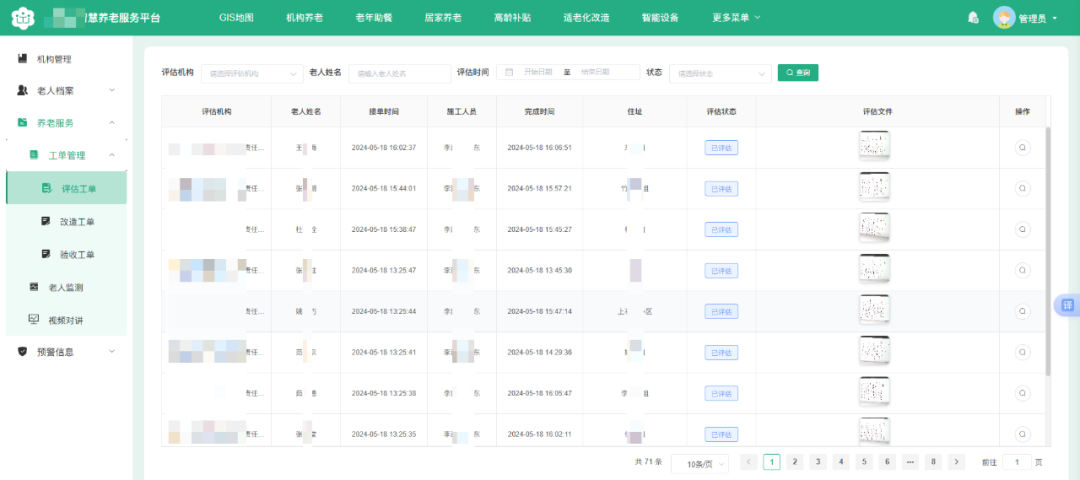 主要為三方服務(wù)機(jī)構(gòu)提供服務(wù)監(jiān)管功能,包括:改造申請(qǐng)審核、改造評(píng)估、適老化改造等功能,系統(tǒng)利用工單的方式實(shí)現(xiàn)對(duì)各環(huán)節(jié)的監(jiān)管,確保改造的質(zhì)量。