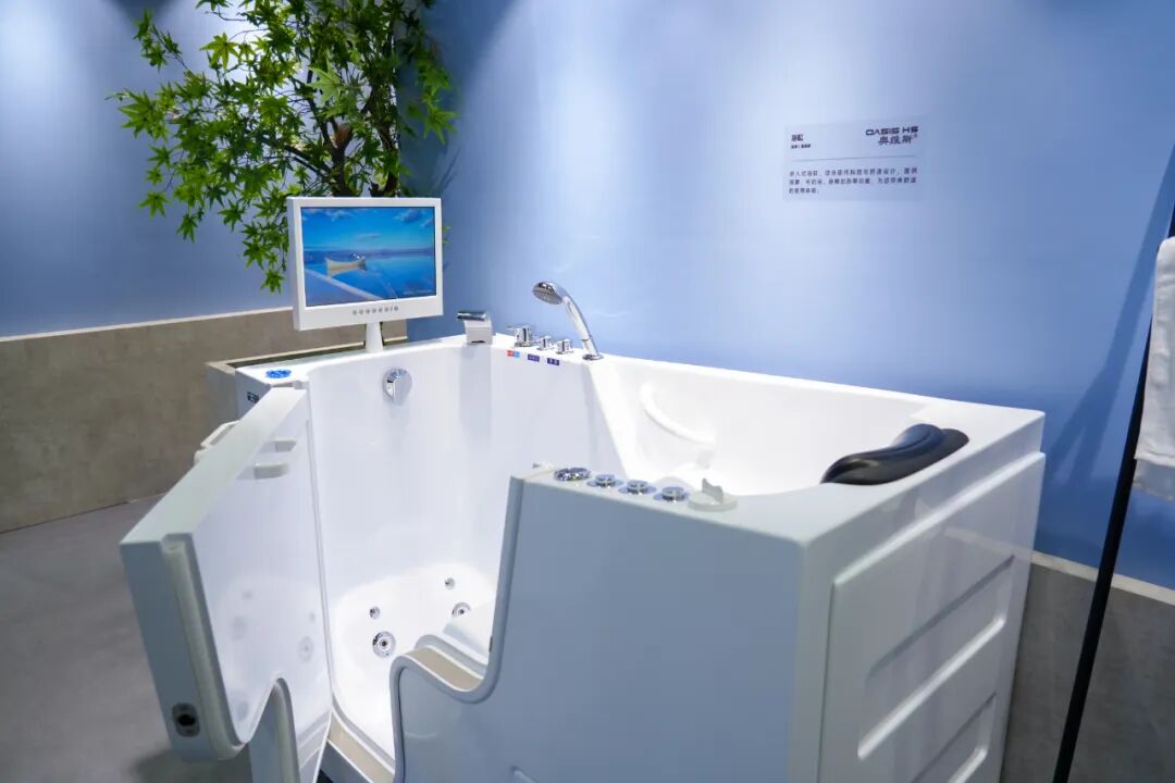 在浴室,體驗(yàn)?zāi)茏杂烧{(diào)節(jié)高度的適老化鏡柜,可以安裝在洗浴區(qū)、走廊、馬桶邊、床邊的防滑扶手、免安裝的馬桶升降椅、抗菌防滑的折疊洗澡椅、無(wú)障礙面盆扶手,將高危區(qū)域轉(zhuǎn)化為安全空間。