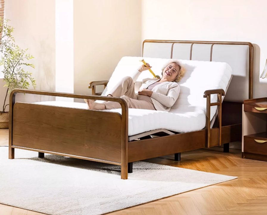 實(shí)木扶手床居家專用多功能電動(dòng)護(hù)理床適老化全實(shí)木智能床