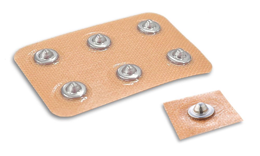 運用電源電路與微細加工技術,開發(fā)出可應對老齡化社會需求的醫(yī)療器械“壓指貼”。在1?的貼片中央配置楔形不銹鋼顆粒,貼于酸痛部位可實現(xiàn)相當于5kg/?的指壓效果,有效緩解酸痛與肌肉疲勞。產品分為單顆粒與六顆粒兩種類型。于2021年12月獲得中國第一類醫(yī)療器械認證。