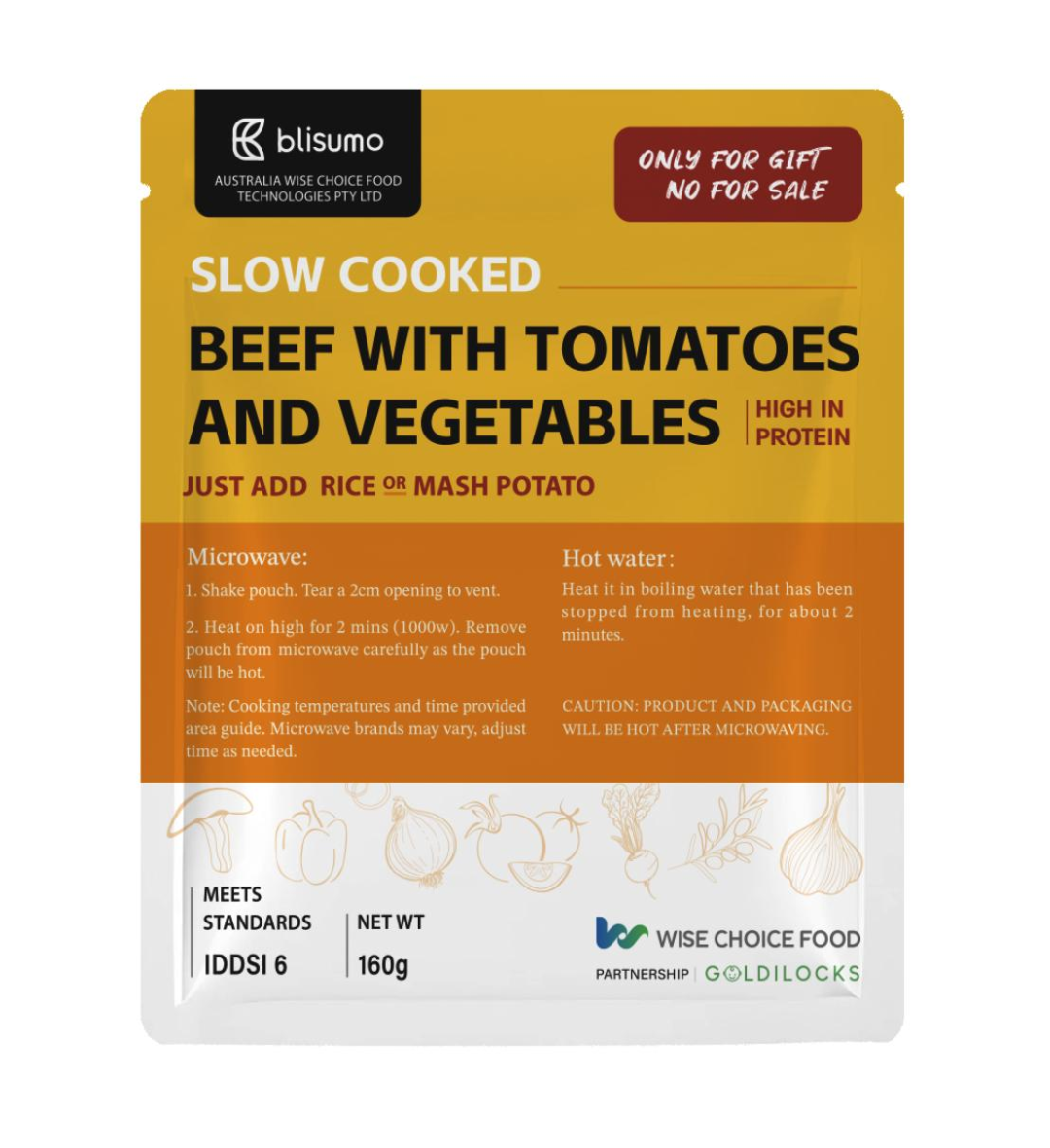 慢燉牛肉番茄。原料為切碎的肉塊、肉醬,可以與大米/馬鈴薯泥等混合一塊食用,無(wú)食品添加劑,無(wú)防腐劑。通過(guò)IDDSI 6級(jí)認(rèn)證,采用尖端科技鎖住營(yíng)養(yǎng),專為老年人需求定制,研發(fā)適合老年人食用的食品調(diào)理配方,解決老人吞咽困難問(wèn)題。烹飪說(shuō)明:①打開(kāi)包裝袋,微波爐加熱2分鐘;②將食材放入沸水中浸泡2分鐘。