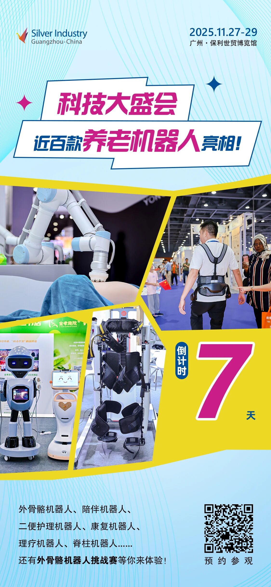 歡迎現(xiàn)場體驗二便護理機器人、外骨骼機器人、會互動聊天的陪伴機器人、能體征監(jiān)測的康護機器人、融合古法艾灸按摩的理療機器人、提高免疫力、促進血液循環(huán)的保健機器人、能陪行導航的戶外機器人…...還有AI眼鏡、導盲機器狗、全地形輪椅、智能監(jiān)護衣、智能健康魔鏡等海內(nèi)外超前沿養(yǎng)老科技。