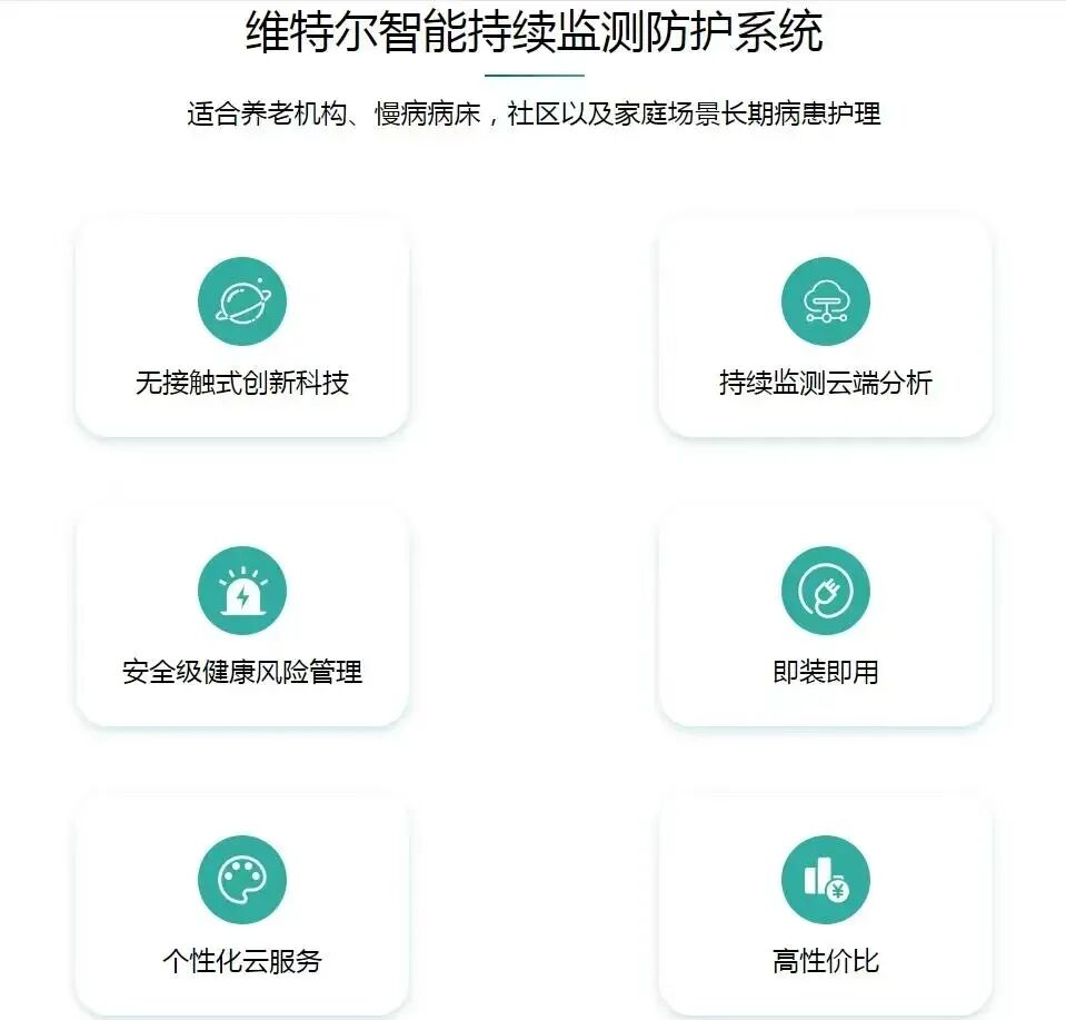 專為養(yǎng)老機構(gòu)、慢病病床、社區(qū)及家庭場景的長期病患護(hù)理設(shè)計,憑借非接觸式創(chuàng)新科技無感融入各類使用場景,可實現(xiàn) 24 小時持續(xù)檢測與云端實時分析,支持手機、平板等多終端查看數(shù)據(jù)。系統(tǒng)以安全級健康風(fēng)險管理為核心,能合理調(diào)配護(hù)理資源,同時具備即裝即用的便捷性,無需額外IT投入即可快速部署。其提供個性化云服務(wù)與個人數(shù)據(jù)定制功能,搭配高性價比的全周期解決方案,既保障監(jiān)測精準(zhǔn)性與使用靈活性,又能適配不同場景的護(hù)理需求。