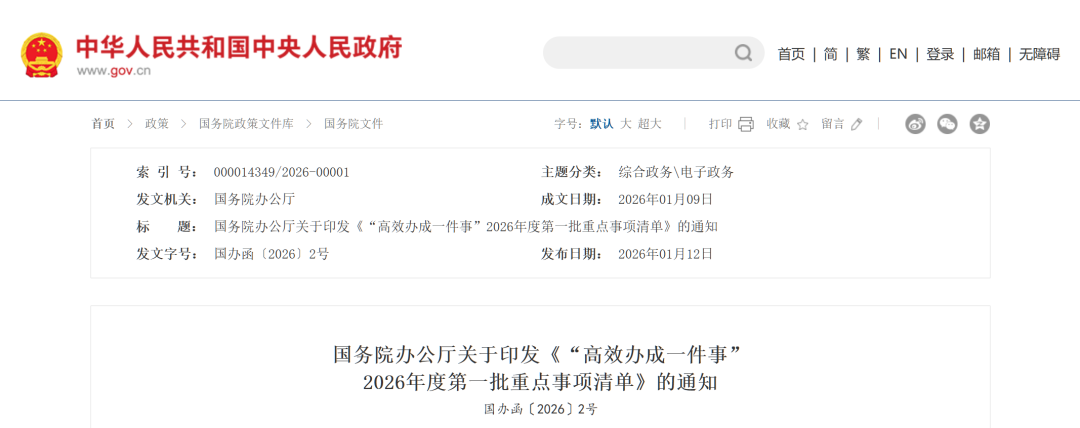 2026年度第一批重點(diǎn)事項(xiàng)清單