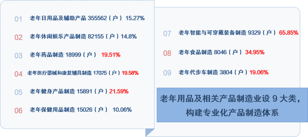 老年用品制造業(yè)已形成9大類產(chǎn)品體系,涵蓋日用品、康復(fù)輔具、智能可穿戴設(shè)備、老年食品、老年健身產(chǎn)品等多個(gè)方向。
