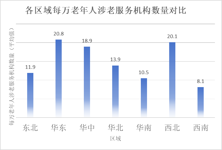 從供給端來看,華東、西北地區(qū)在養(yǎng)老服務(wù)供給數(shù)量上表現(xiàn)突出,在政策導(dǎo)向上這些地區(qū)則更強(qiáng)調(diào)基礎(chǔ)養(yǎng)老服務(wù)的可及性,通過完善社區(qū)養(yǎng)老服務(wù)中心、助餐點(diǎn)、基層服務(wù)網(wǎng)點(diǎn)等方式,降低老年人獲取服務(wù)的時(shí)間和空間成本。
